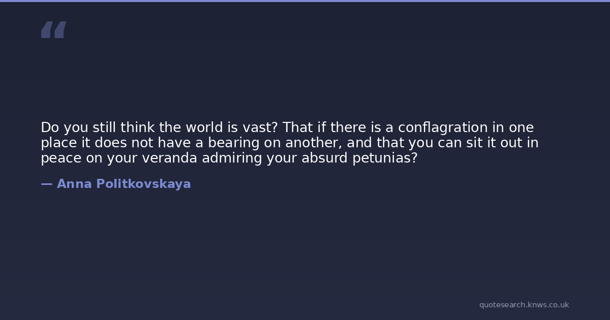 Do you still think the world is vast? That if there is a conflagration in one place it does not have a bearing on another, and that you can sit it out in peace on your veranda admiring your absurd petunias?