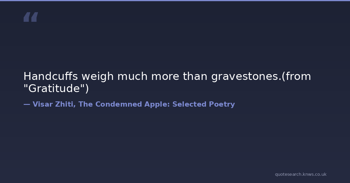 Handcuffs weigh much more than gravestones.(from "Gratitude")