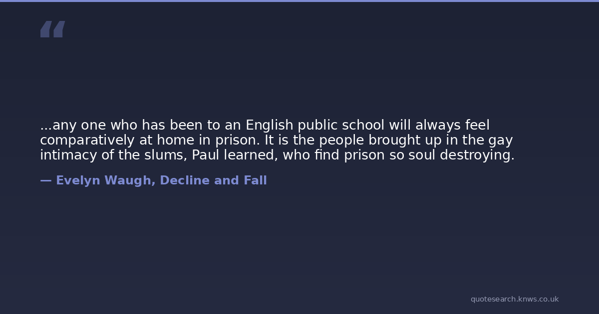 ...any one who has been to an English public school will always feel comparatively at home in prison. It is the people brought up in the gay intimacy of the slums, Paul learned, who find prison so soul destroying.
