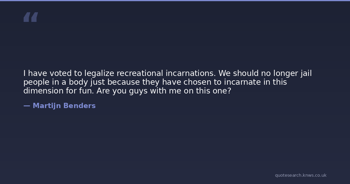 I have voted to legalize recreational incarnations. We should no longer jail people in a body just because they have chosen to incarnate in this dimension for fun. Are you guys with me on this one?
