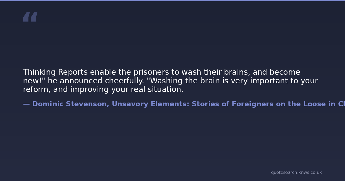Thinking Reports enable the prisoners to wash their brains, and become new!" he announced cheerfully. "Washing the brain is very important to your reform, and improving your real situation.