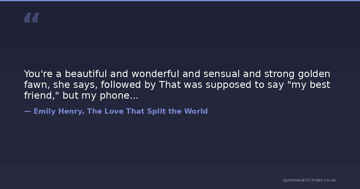 You're a beautiful and wonderful and sensual and strong golden fawn, she says, followed by That was supposed to say "my best friend," but my phone...