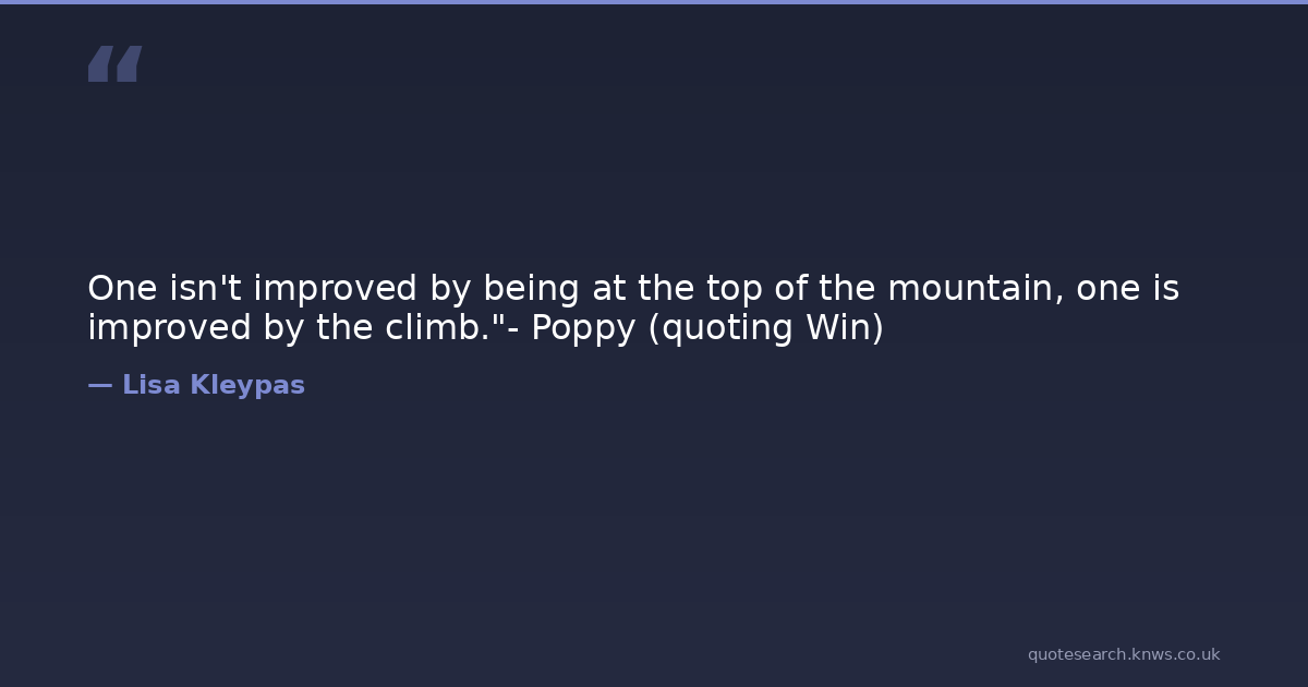 One isn't improved by being at the top of the mountain, one is improved by the climb."- Poppy (quoting Win)