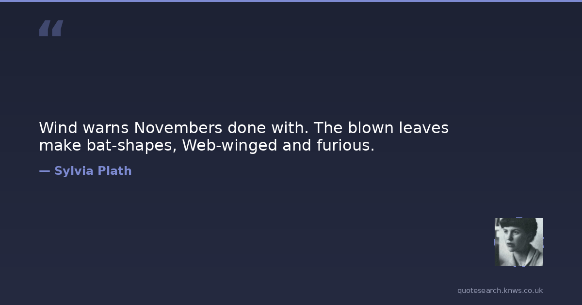 Wind warns Novembers done with. The blown leaves make bat-shapes, Web-winged and furious.