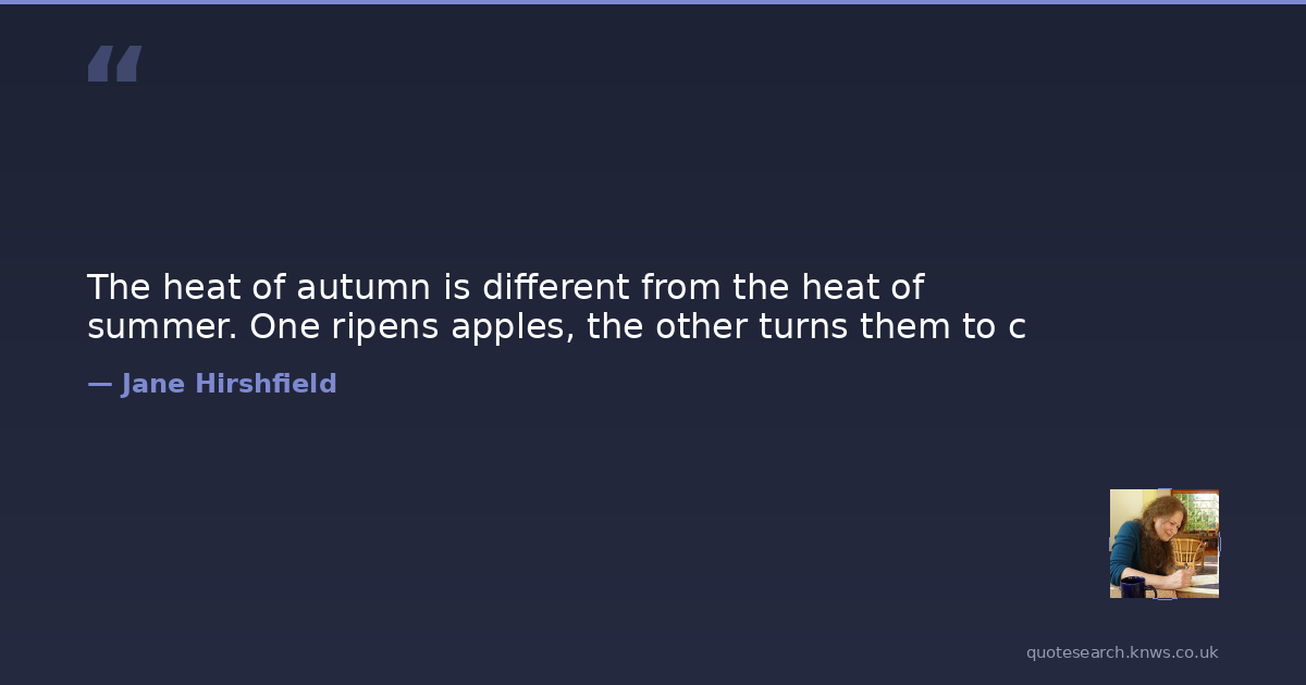The heat of autumn is different from the heat of summer. One ripens apples, the other turns them to c