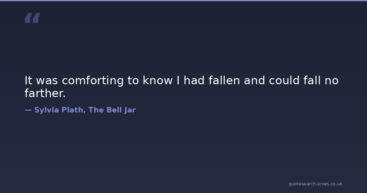 It was comforting to know I had fallen and could fall no farther. fall fallen plath sylvia the-bella-jar Download Image Share on X Share on Facebook Copy Link