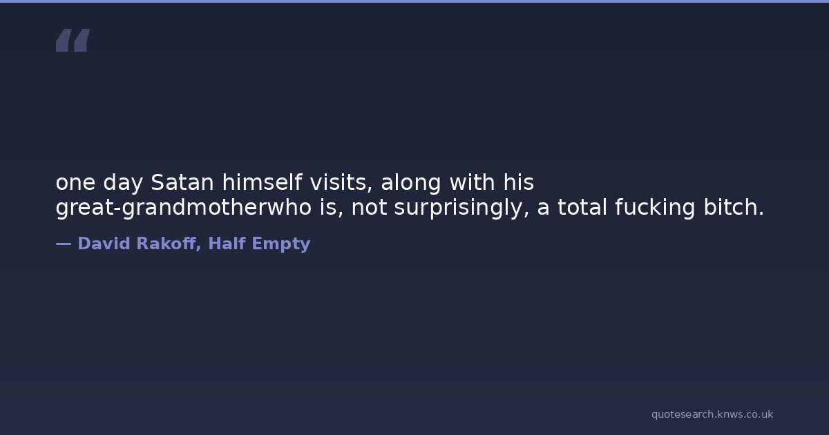 one day Satan himself visits, along with his great-grandmotherwho is, not surprisingly, a total fucking bitch.
