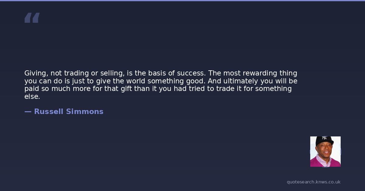 Giving, not trading or selling, is the basis of success. The most rewarding thing you can do is just to give the world something good. And ultimately you will be paid so much more for that gift than it you had tried to trade it for something else.