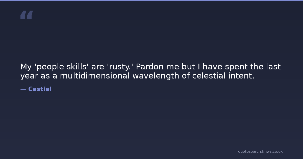 My 'people skills' are 'rusty.' Pardon me but I have spent the last year as a multidimensional wavelength of celestial intent.