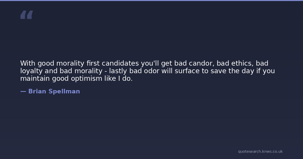 With good morality first candidates you'll get bad candor, bad ethics, bad loyalty and bad morality - lastly bad odor will surface to save the day if you maintain good optimism like I do.