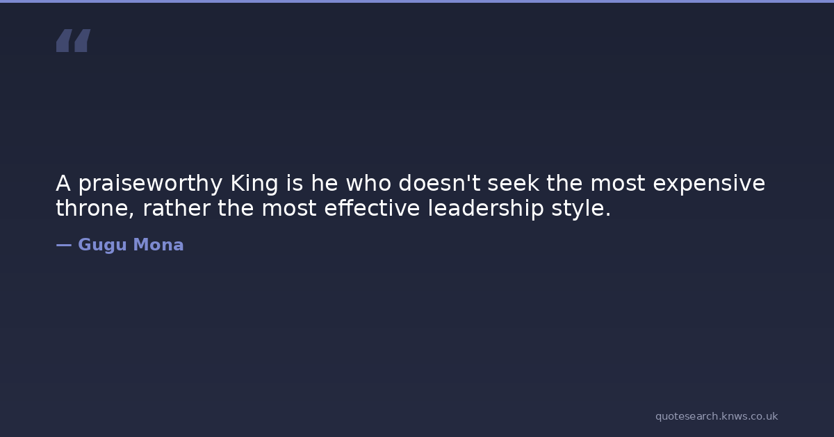 A praiseworthy King is he who doesn't seek the most expensive throne, rather the most effective leadership style.