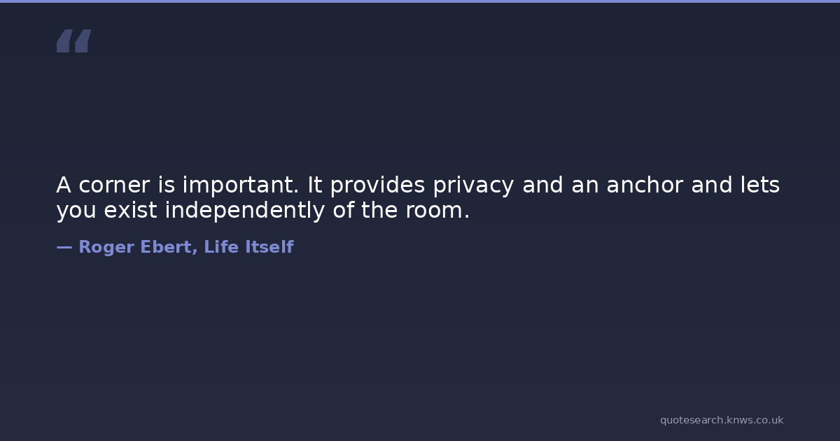 A corner is important. It provides privacy and an anchor and lets you exist independently of the room.