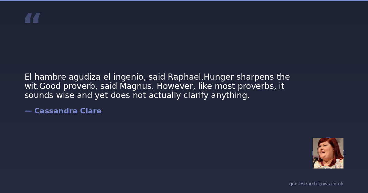 El hambre agudiza el ingenio, said Raphael.Hunger sharpens the wit.Good proverb, said Magnus. However, like most proverbs, it sounds wise and yet does not actually clarify anything.
