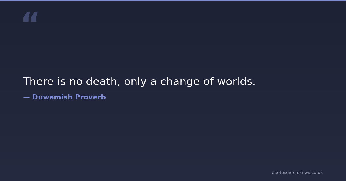 There is no death, only a change of worlds. indians native-americans proverbs Download Image Share on X Share on Facebook Copy Link