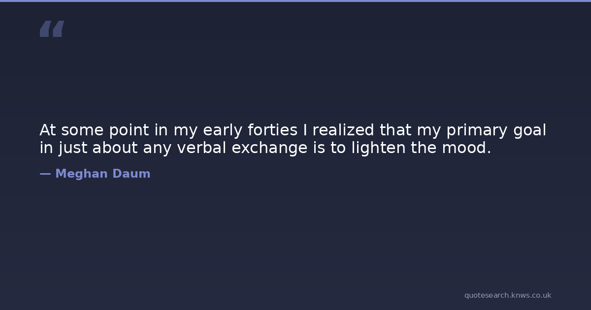 At some point in my early forties I realized that my primary goal in just about any verbal exchange is to lighten the mood.