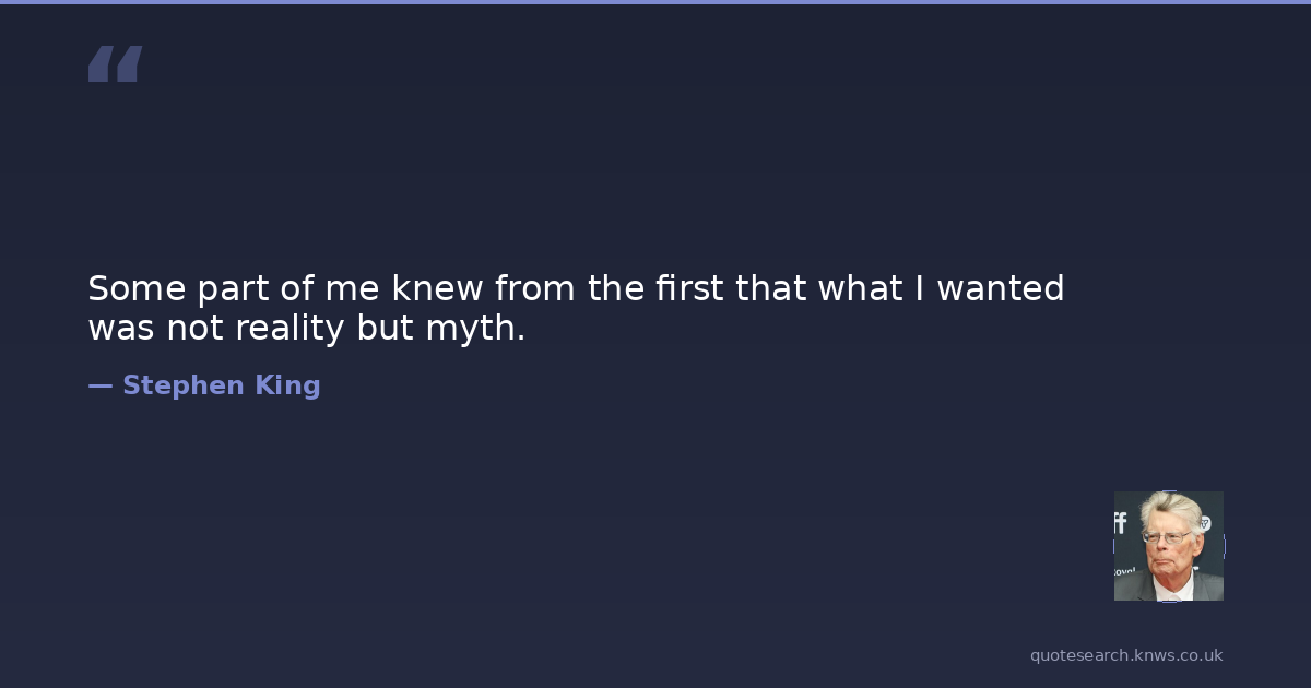 Some part of me knew from the first that what I wanted was not reality but myth.