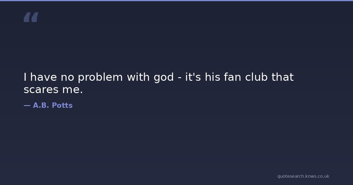 I have no problem with god - it's his fan club that scares me. atheist god humour Download Image Share on X Share on Facebook Copy Link