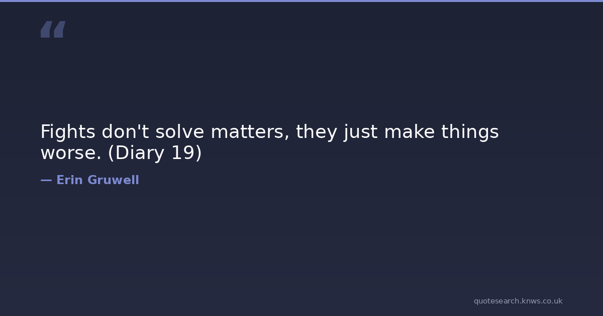 Fights don't solve matters, they just make things worse. (Diary 19)