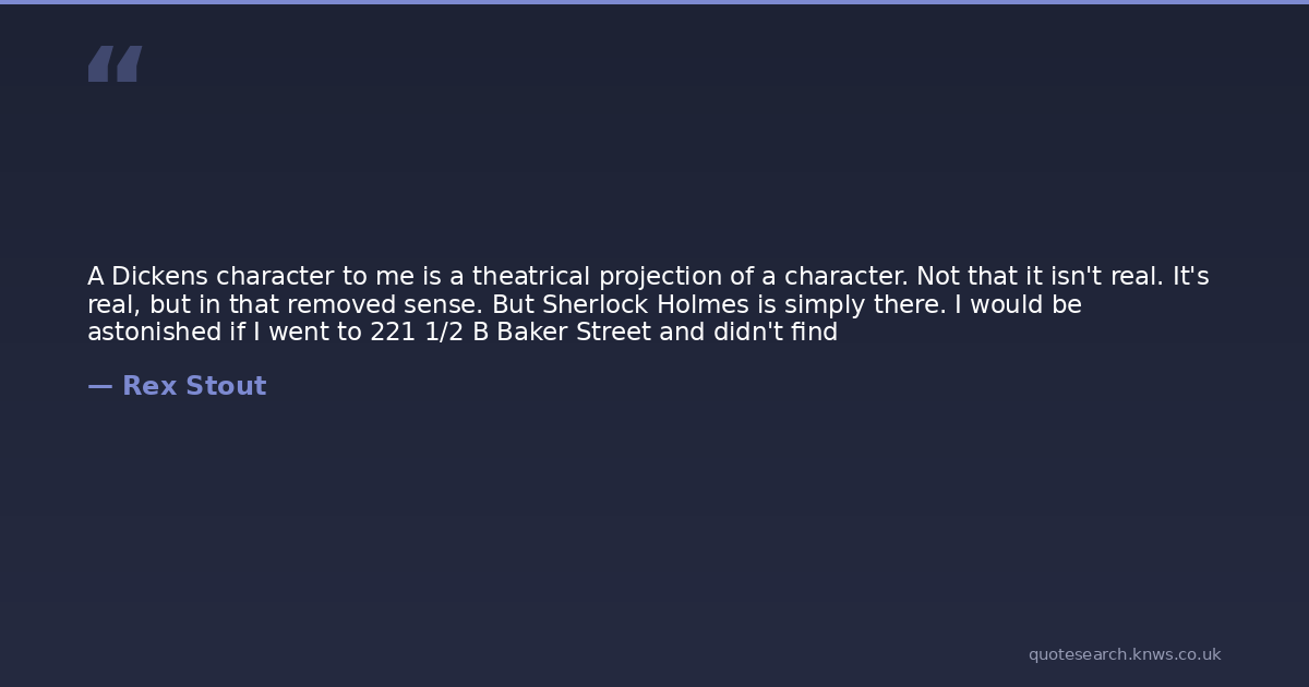 A Dickens character to me is a theatrical projection of a character. Not that it isn't real. It's real, but in that removed sense. But Sherlock Holmes is simply there. I would be astonished if I went to 221 1/2 B Baker Street and didn't find