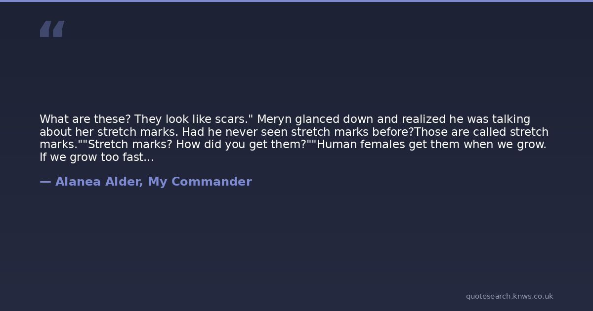 What are these? They look like scars." Meryn glanced down and realized he was talking about her stretch marks. Had he never seen stretch marks before?Those are called stretch marks.""Stretch marks? How did you get them?""Human females get them when we grow. If we grow too fast our skin rips apart and heals. It's a very painful process." Meryn lied through her teeth. There was no way she was going to discuss stretch marks after the most mind blowing sex of her life. Nope. Wasn't going to happen. Aiden's expression became reverent."Human females are amazing creatures, you endure so much pain yet are so fragile." He kissed each shiny line.I'm going to hell.