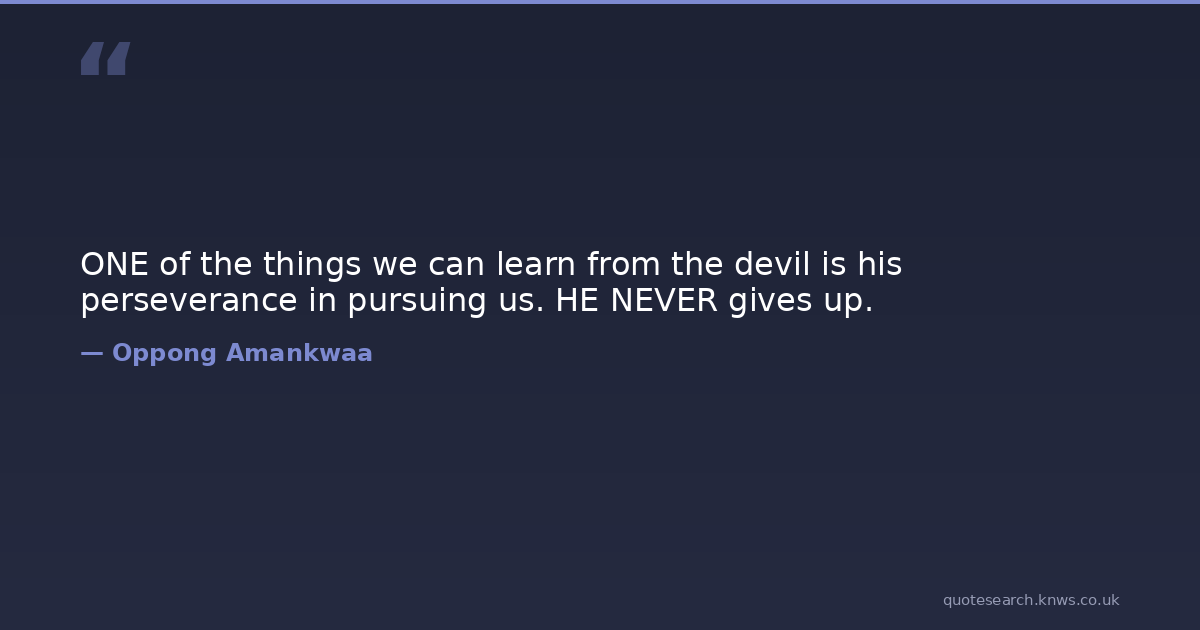 ONE of the things we can learn from the devil is his perseverance in pursuing us. HE NEVER gives up.
