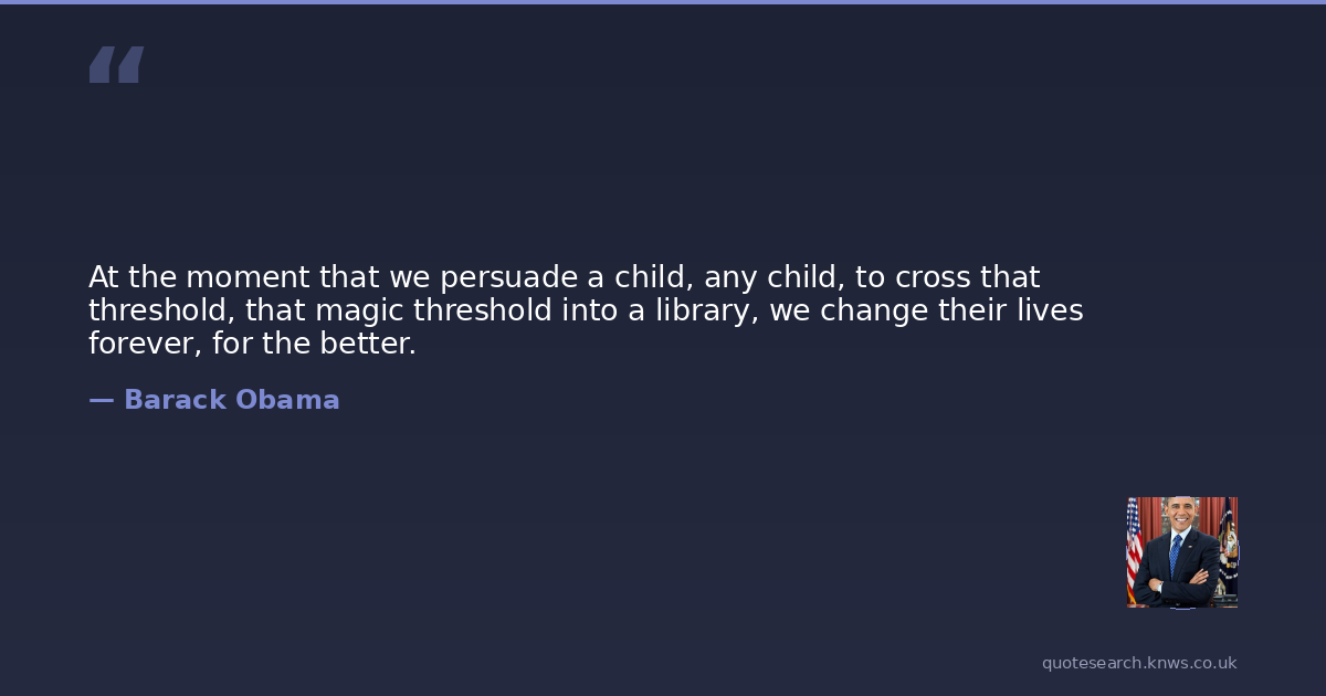 At the moment that we persuade a child, any child, to cross that threshold, that magic threshold into a library, we change their lives forever, for the better.