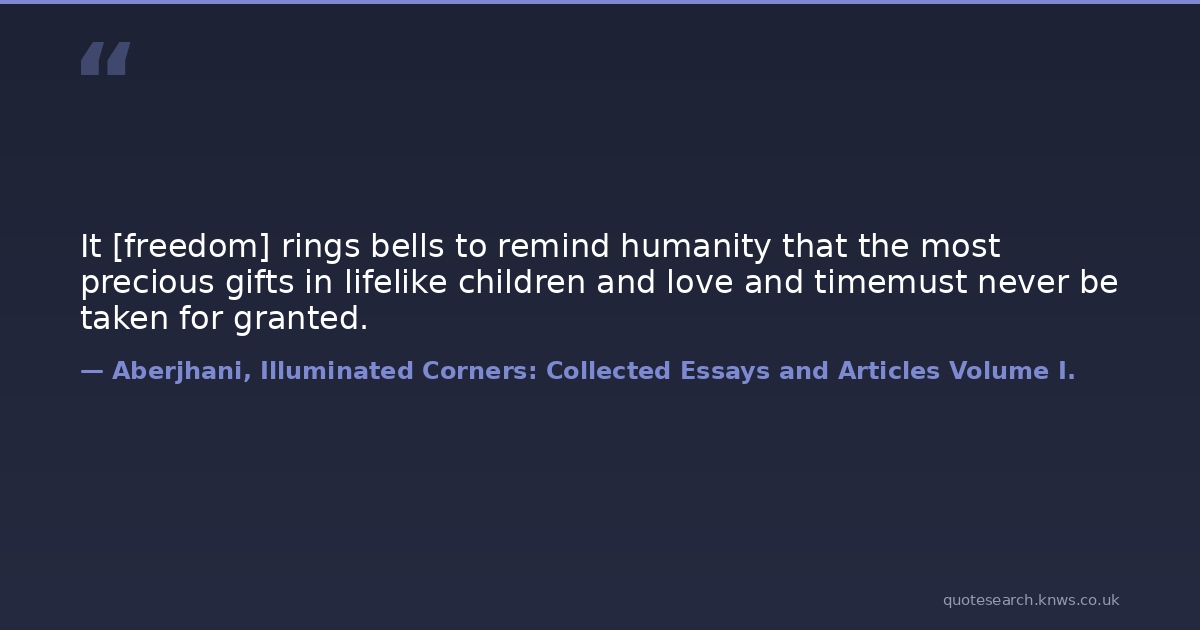 It [freedom] rings bells to remind humanity that the most precious gifts in lifelike children and love and timemust never be taken for granted.