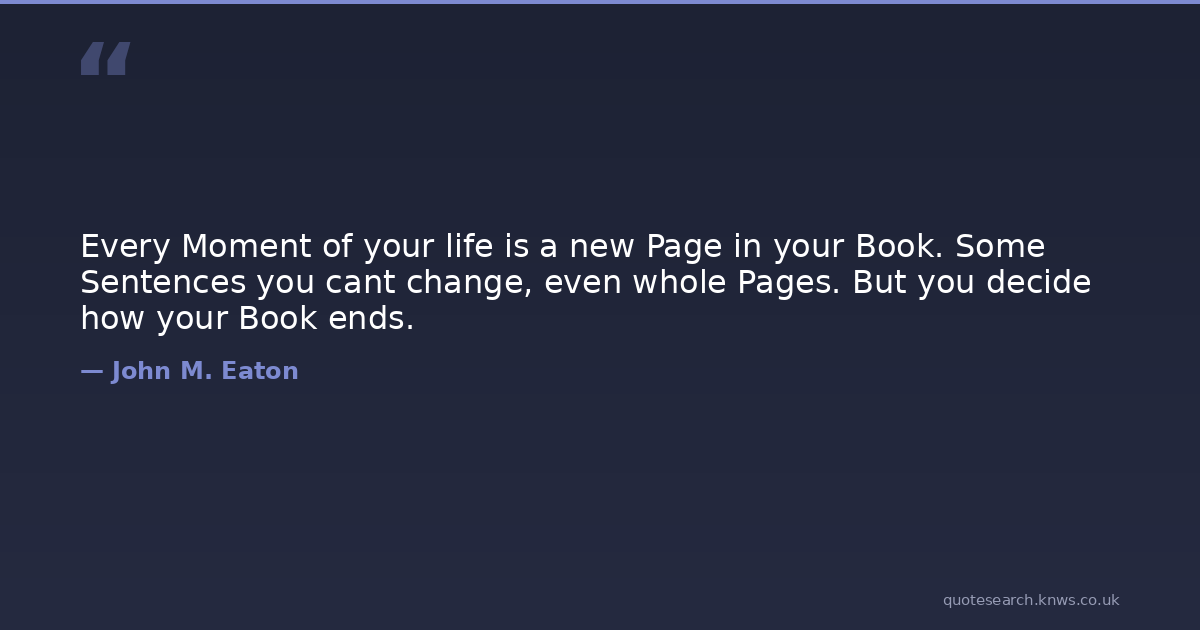 Every Moment of your life is a new Page in your Book. Some Sentences you cant change, even whole Pages. But you decide how your Book ends.