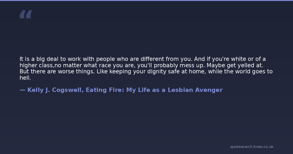 It is a big deal to work with people who are different from you. And if you're white or of a higher class,no matter what race you are, you'll probably mess up. Maybe get yelled at. But there are worse things. Like keeping your dignity safe at home, while the world goes to hell.