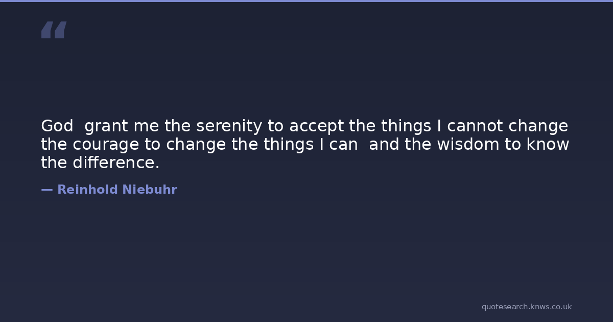 God grant me the serenity to accept the things I cannot change the courage to change the things I can and the wisdom to know the difference.