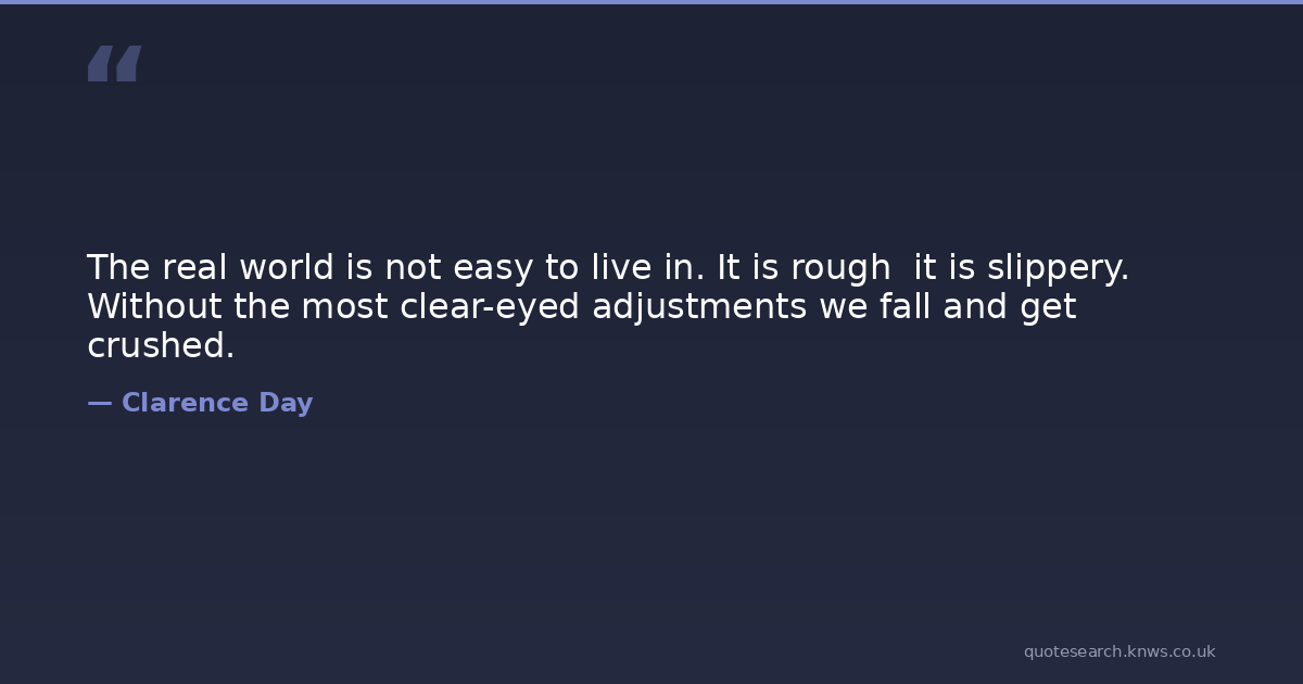 The real world is not easy to live in. It is rough it is slippery. Without the most clear-eyed adjustments we fall and get crushed.