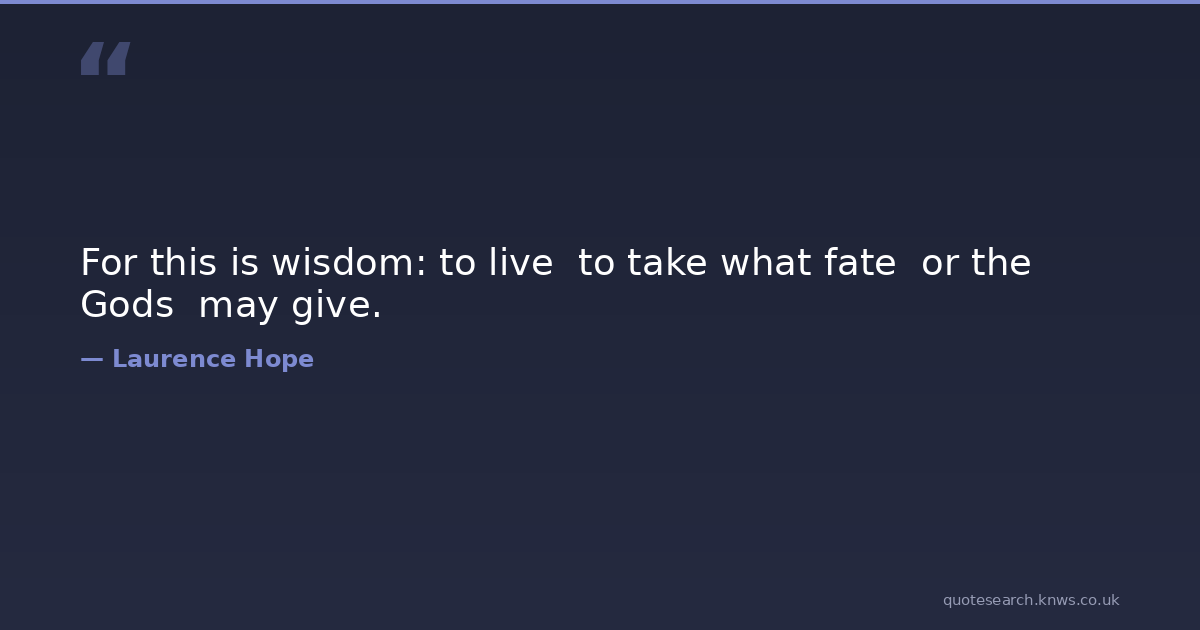 For this is wisdom: to live to take what fate or the Gods may give. acceptance Download Image Share on X Share on Facebook Copy Link
