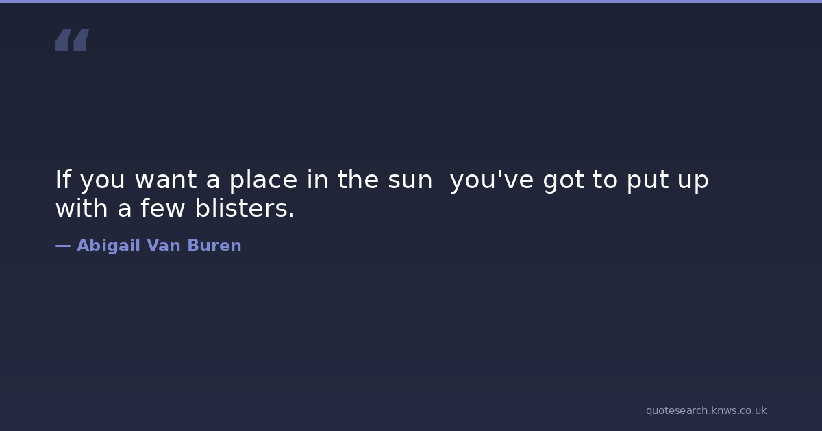 If you want a place in the sun you've got to put up with a few blisters.