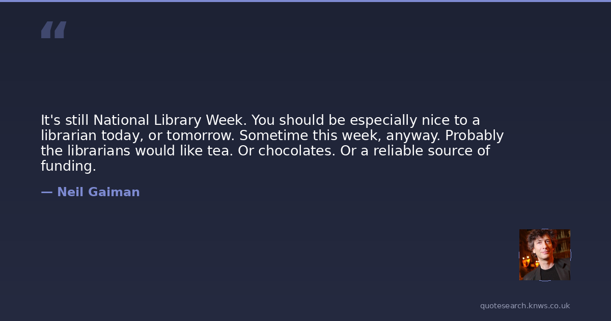 It's still National Library Week. You should be especially nice to a librarian today, or tomorrow. Sometime this week, anyway. Probably the librarians would like tea. Or chocolates. Or a reliable source of funding.