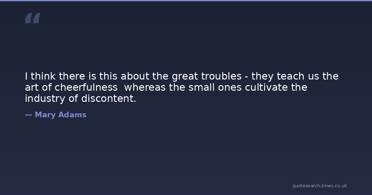 I think there is this about the great troubles - they teach us the art of cheerfulness whereas the small ones cultivate the industry of discontent.