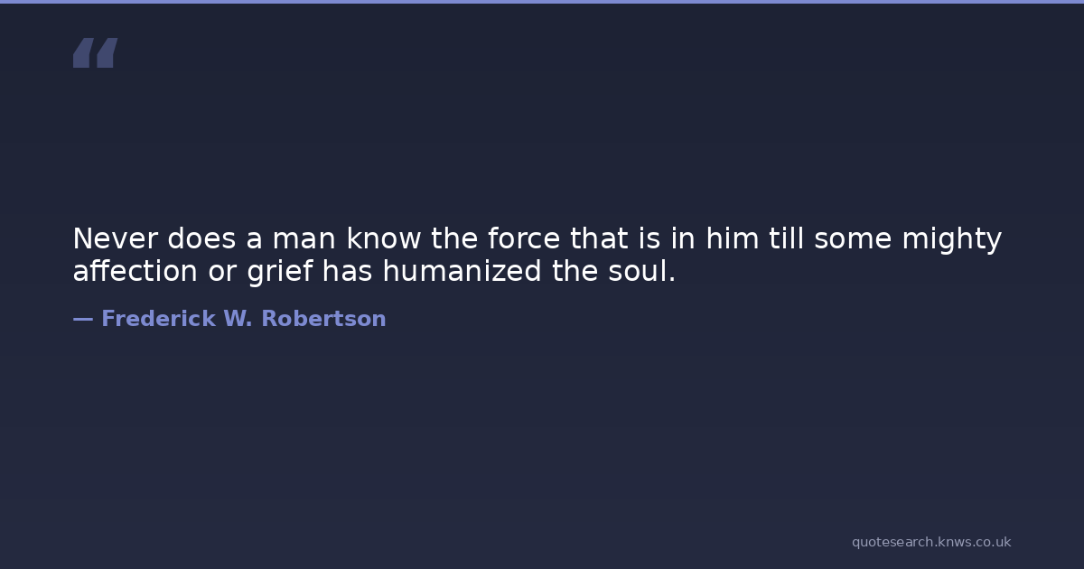 Never does a man know the force that is in him till some mighty affection or grief has humanized the soul.