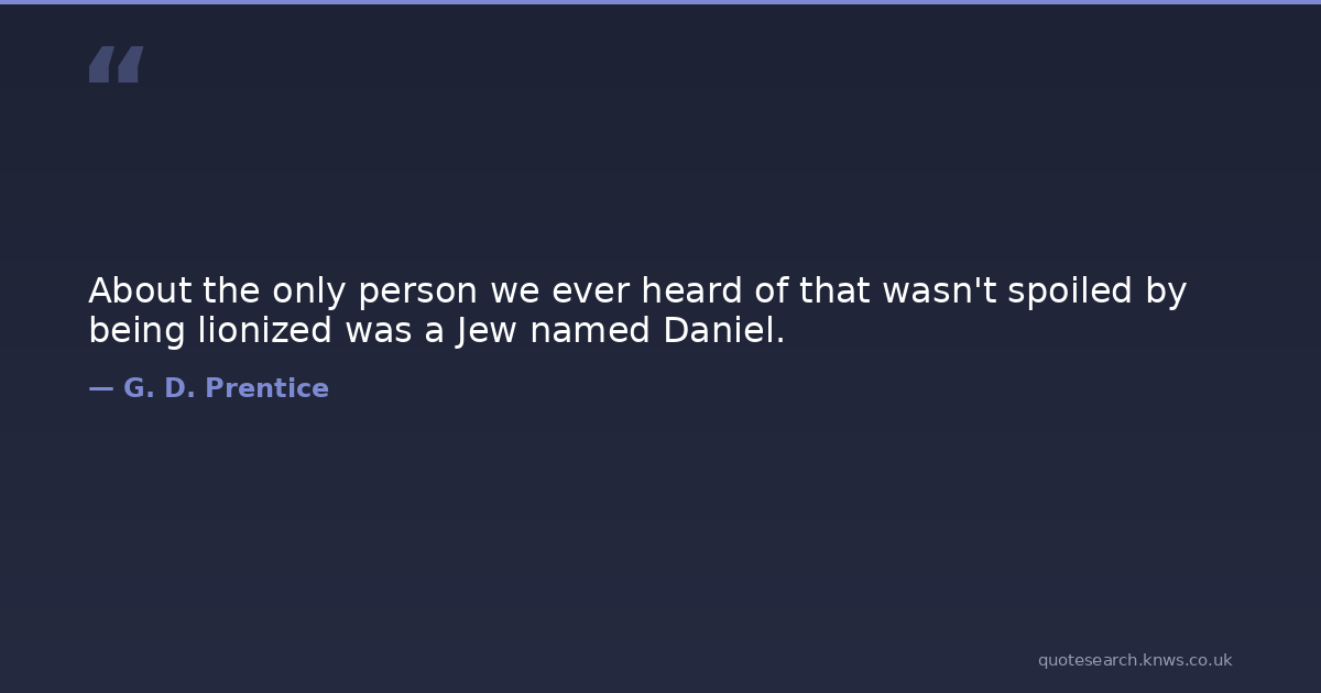 About the only person we ever heard of that wasn't spoiled by being lionized was a Jew named Daniel. applause Download Image Share on X Share on Facebook Copy Link