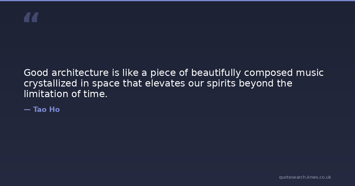 Good architecture is like a piece of beautifully composed music crystallized in space that elevates our spirits beyond the limitation of time.