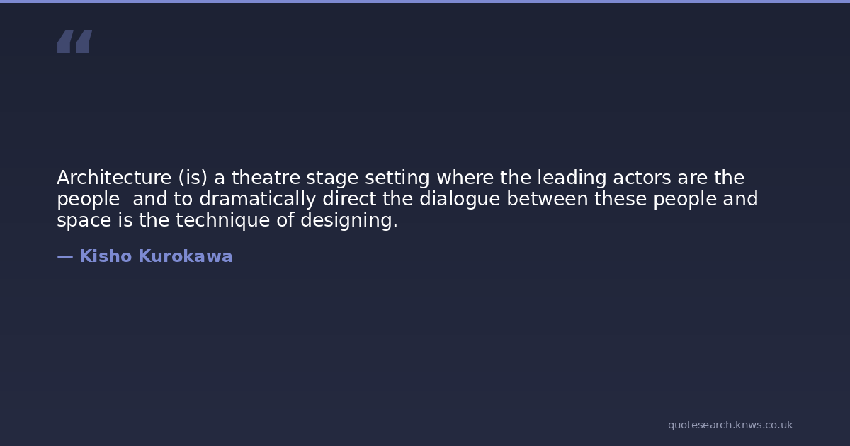 Architecture (is) a theatre stage setting where the leading actors are the people and to dramatically direct the dialogue between these people and space is the technique of designing.