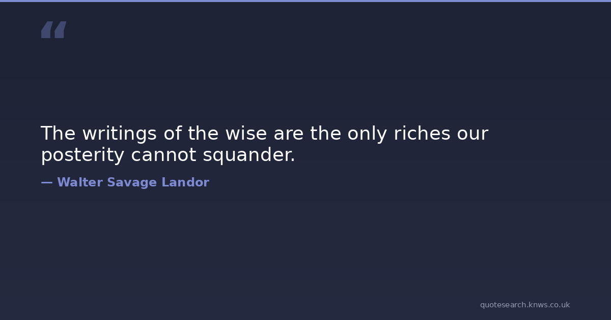 The writings of the wise are the only riches our posterity cannot squander.