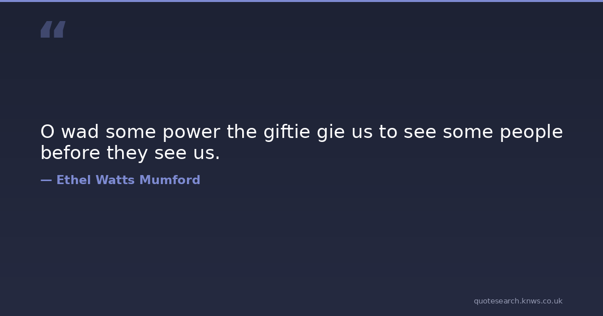 O wad some power the giftie gie us to see some people before they see us.