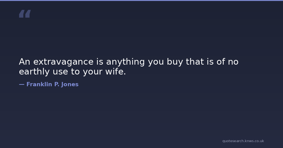 An extravagance is anything you buy that is of no earthly use to your wife. buying selling Download Image Share on X Share on Facebook Copy Link