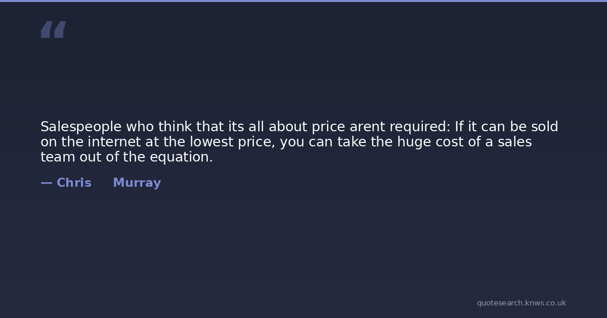 Salespeople who think that its all about price arent required: If it can be sold on the internet at the lowest price, you can take the huge cost of a sales team out of the equation.