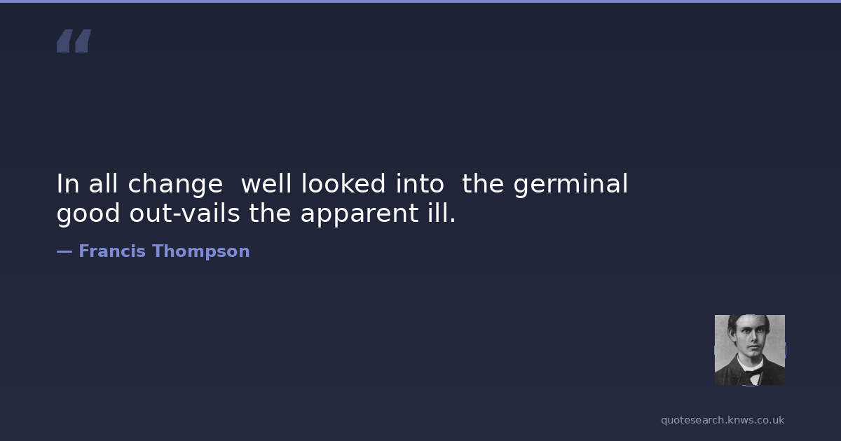 In all change well looked into the germinal good out-vails the apparent ill.