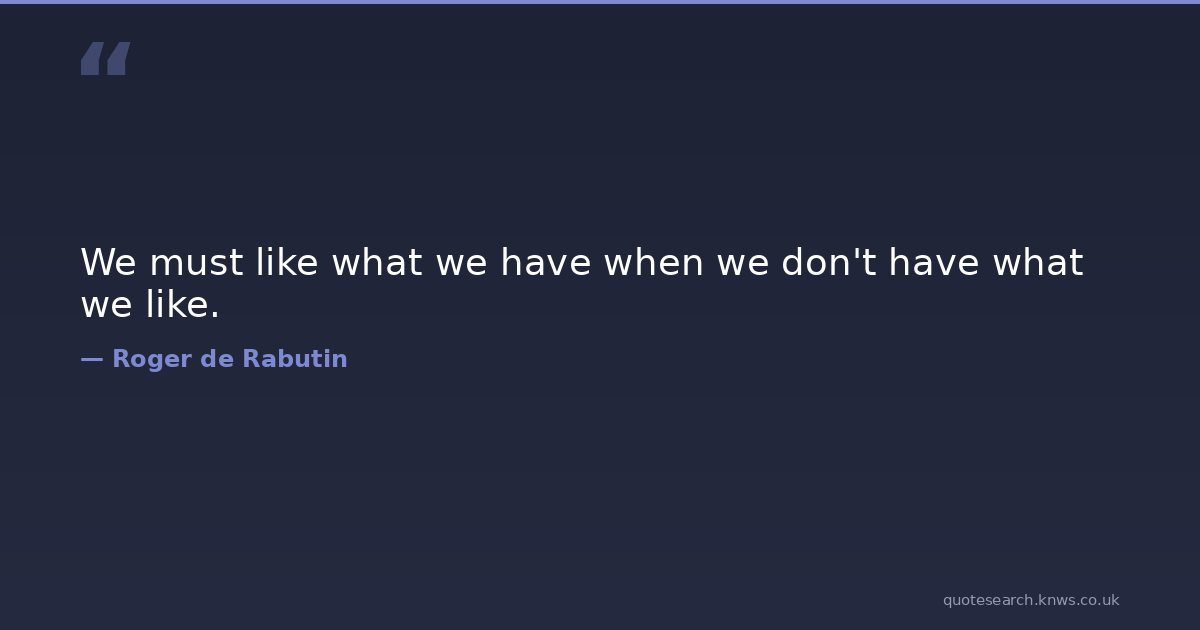 We must like what we have when we don't have what we like. acceptance Download Image Share on X Share on Facebook Copy Link