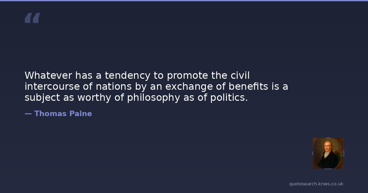 Whatever has a tendency to promote the civil intercourse of nations by an exchange of benefits is a subject as worthy of philosophy as of politics.