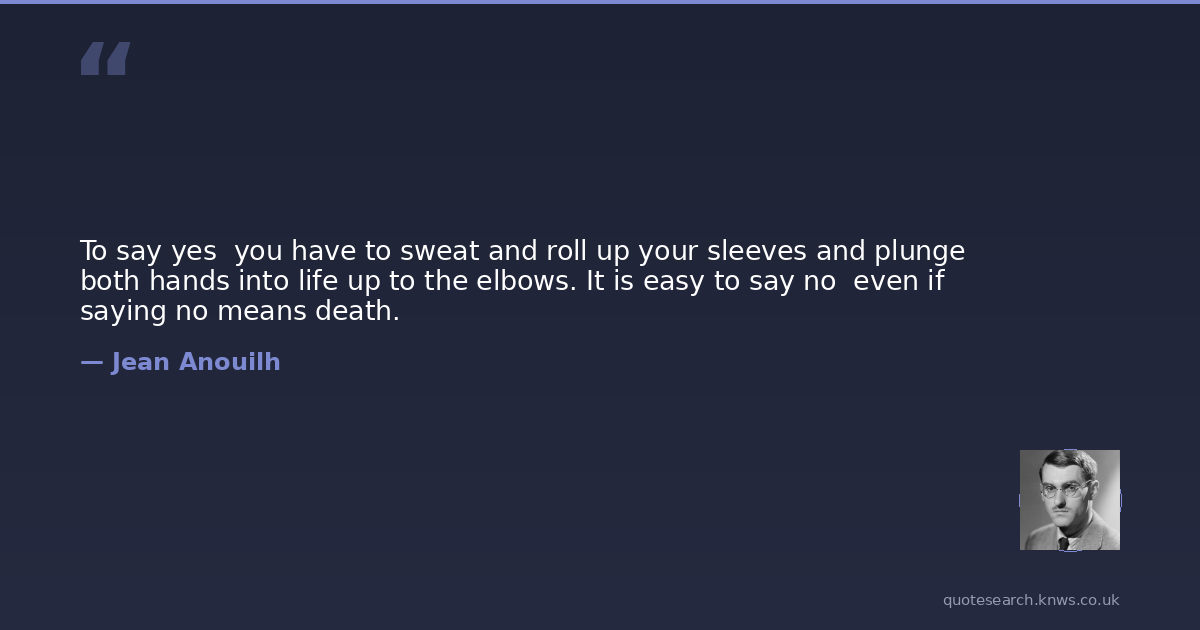 To say yes you have to sweat and roll up your sleeves and plunge both hands into life up to the elbows. It is easy to say no even if saying no means death.