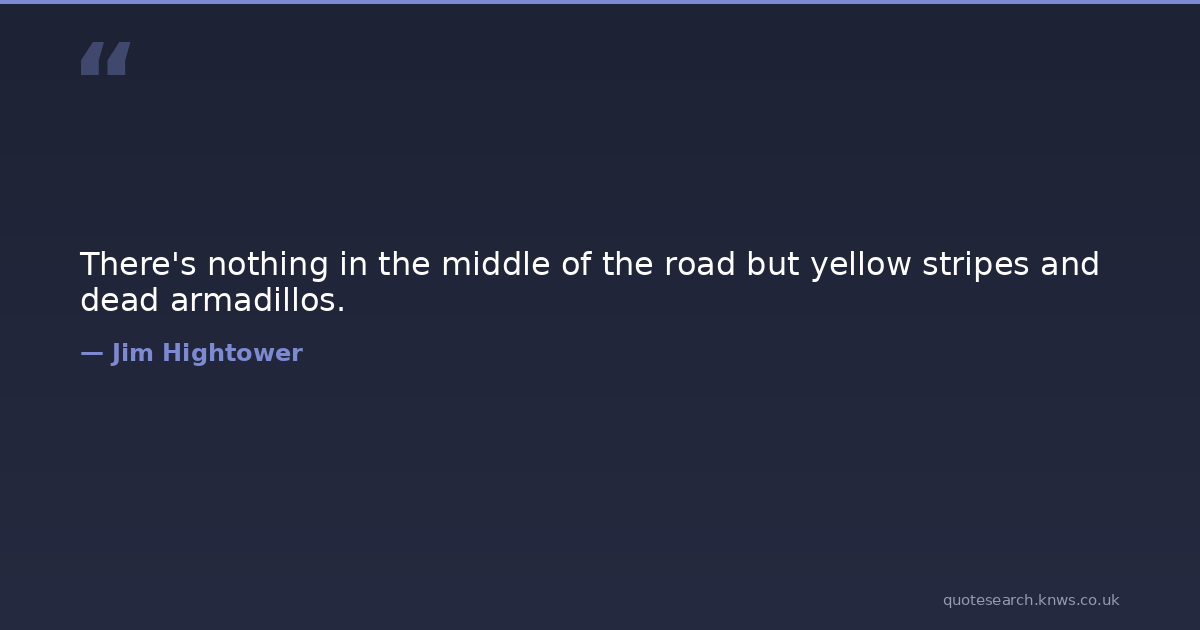 There's nothing in the middle of the road but yellow stripes and dead armadillos.