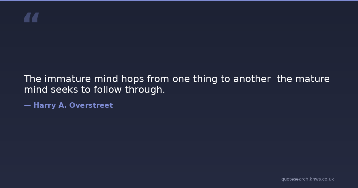 The immature mind hops from one thing to another the mature mind seeks to follow through.