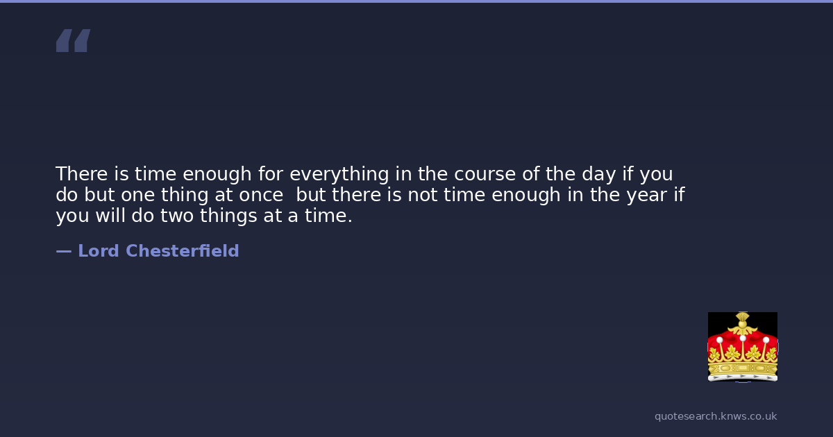 There is time enough for everything in the course of the day if you do but one thing at once but there is not time enough in the year if you will do two things at a time.